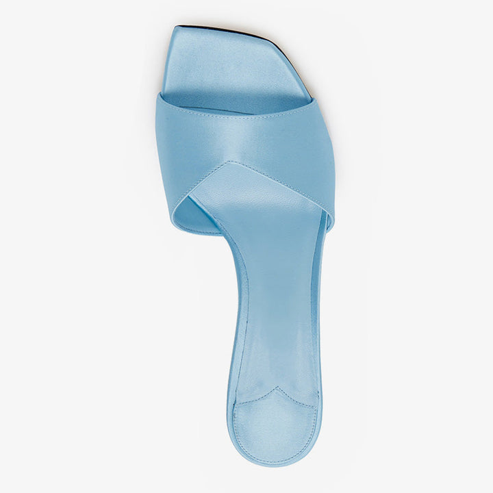 Blue Satin Heeled Mules