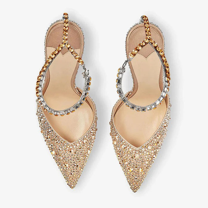 Rose Gold Satin Crystal Pumps