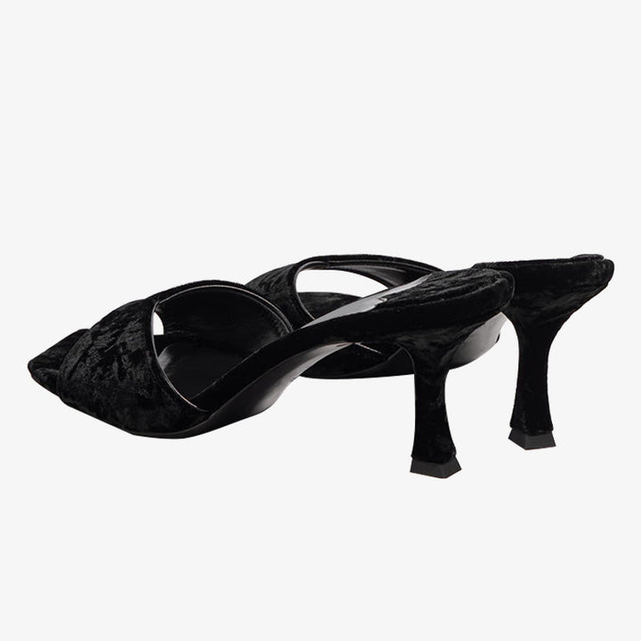 Black Velvet Square-Toe Mules