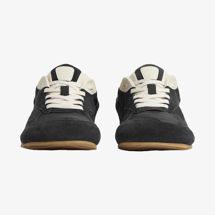 A sleek low-top sneaker crafted from soft suede and lightweight nylon with smooth leather trims. Finished with a calf leather lining and durable rubber outsole for all-day comfort.
