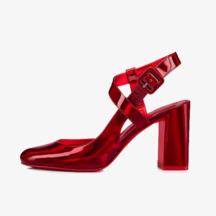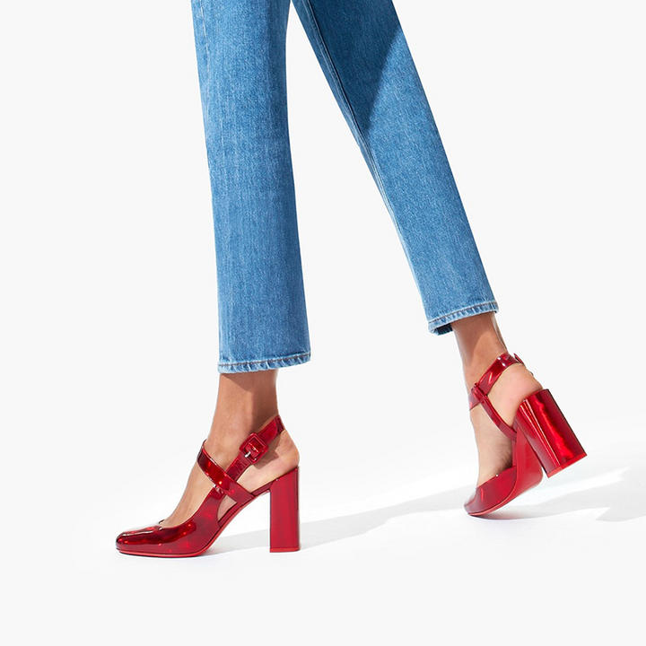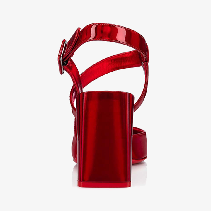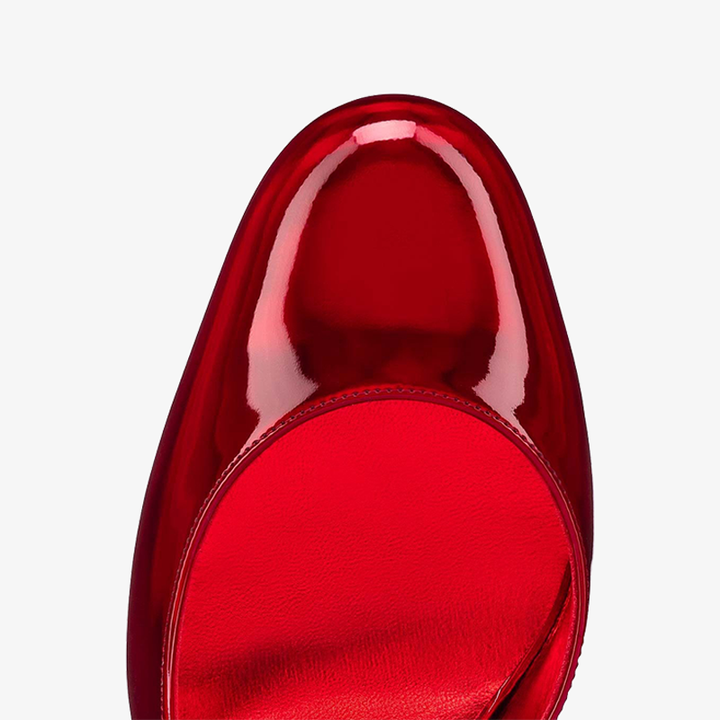 This sophisticated pump showcases the expert craftsmanship of its designer. Its tapered city silhouette is defined by crossed straps that elegantly highlight the instep. Set on an 100mm heel, the iridescent red patent leather upper is accented with delicate finishes, embodying timeless elegance and creativity.