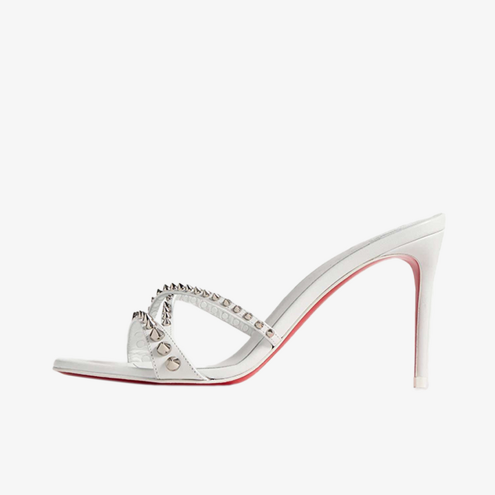 White Leather Sandal with Silver-Tone Studs