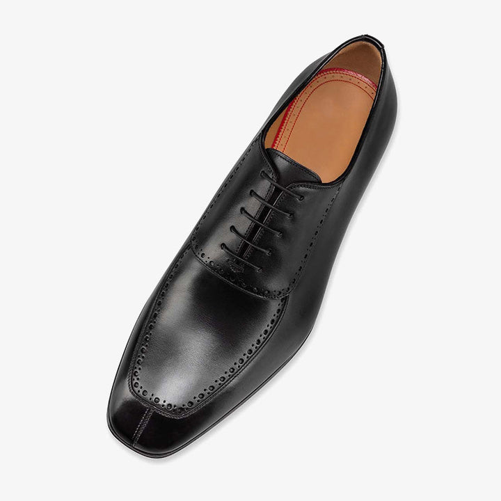 With a sleek silhouette and timeless elegance, this derby shoe showcases impeccable craftsmanship. Crafted from black calf leather, it features delicate laser perforations that highlight the attention to detail. This urban model is finished with discreet lacing and a refined, meticulous design.