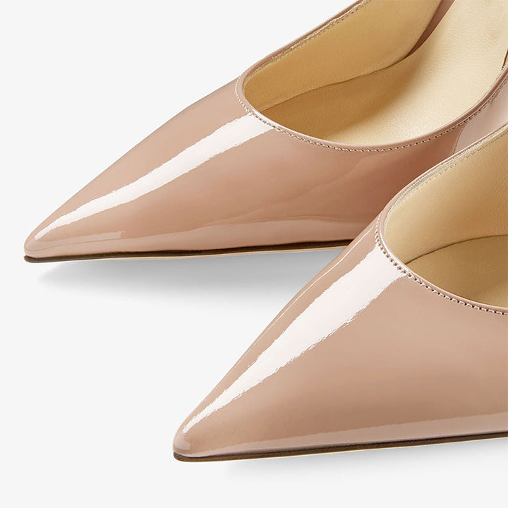 Elegantly crafted in ballet-pink patent leather, these heels exude timeless sophistication. The sharply pointed toe and high-cut design offer a refined, elongated look, while the sleek stiletto silhouette adds effortless allure. Finished with a supple leather lining and sole, they are the perfect complement to polished ensembles.The heel height of this pair is 100mm.