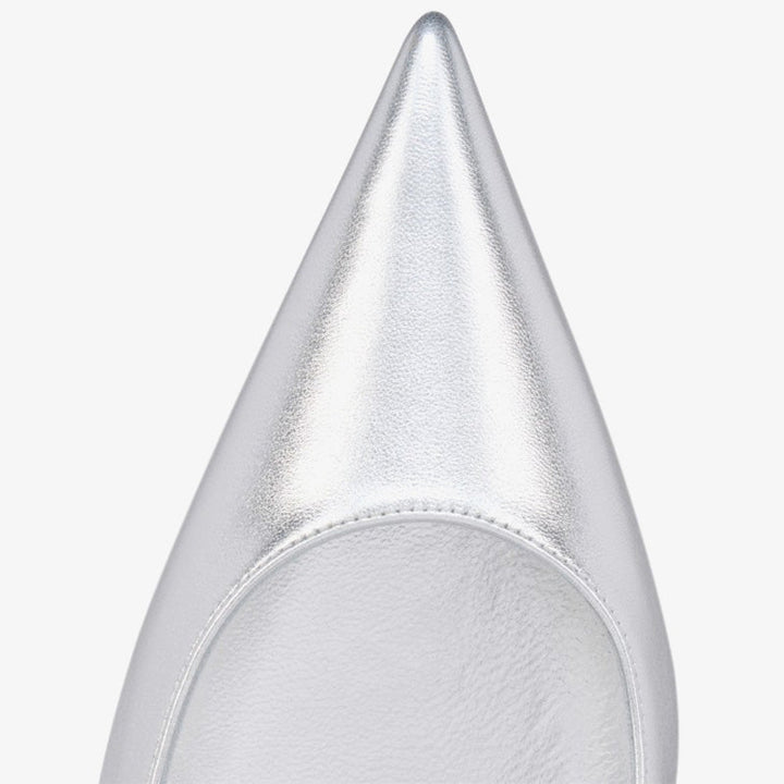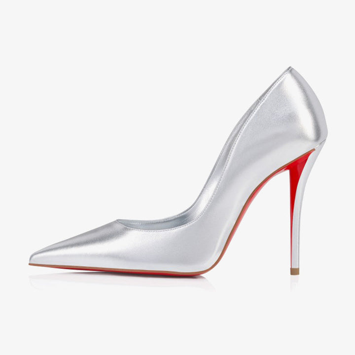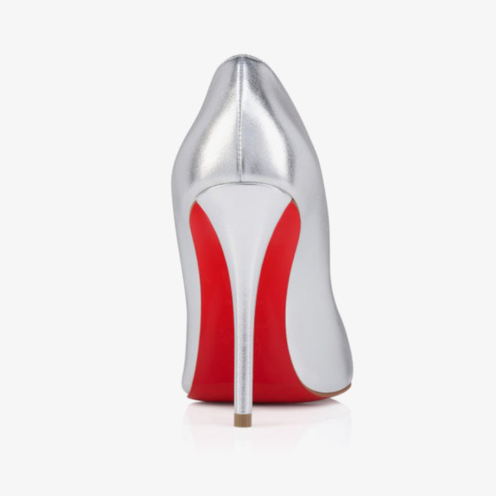 The tapered silhouette of this pump offers undeniable sophistication. Set on a 100mm stiletto heel that reveals the iconic red sole, this model is crafted from silver laminated calf leather. It features the new ‘Everlasting Red’ sole, an innovative coating technique that ensures long-lasting durability and vibrant red for years to come.