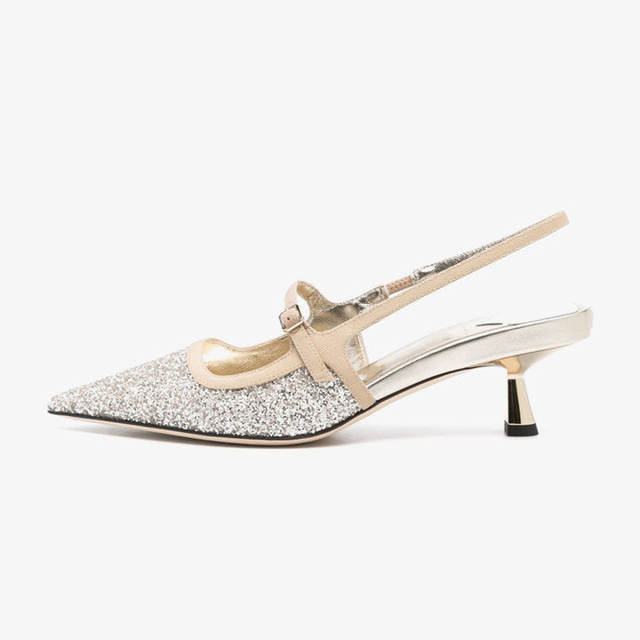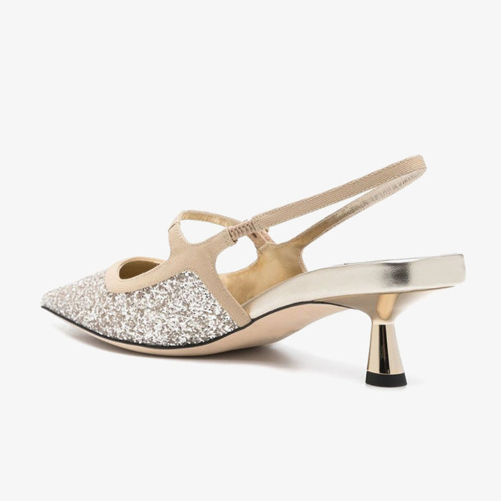 Sand Beige Glitter Cut-Out Slingback Pumps