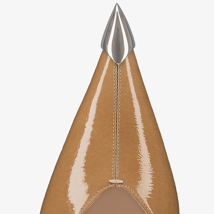 These pumps exude elegance and sophistication. Crafted entirely from glossy brown patent leather, this stunning pair features a 60 mm heel and a pointed toe with a metallic sheen inspired by the delicate curves of rose thorns. The patent leather offers exceptional suppleness and flexibility. Due to the natural wrinkling effect of the material, slight variations may occur between the product and its image.