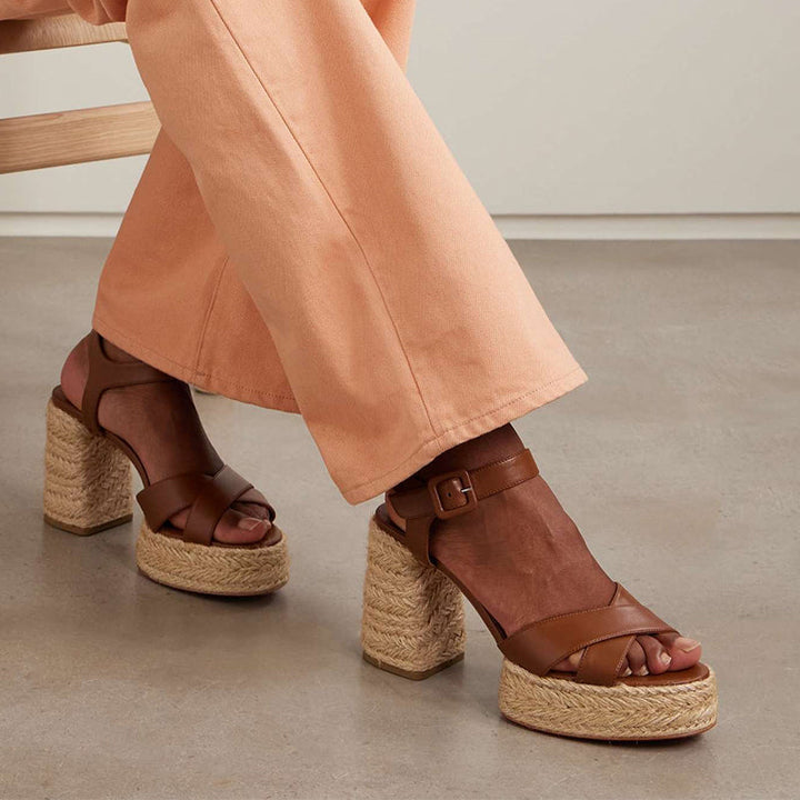 Brown Leather Espadrille Sandal