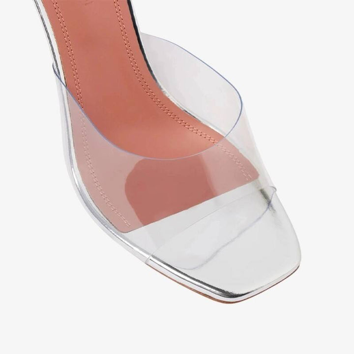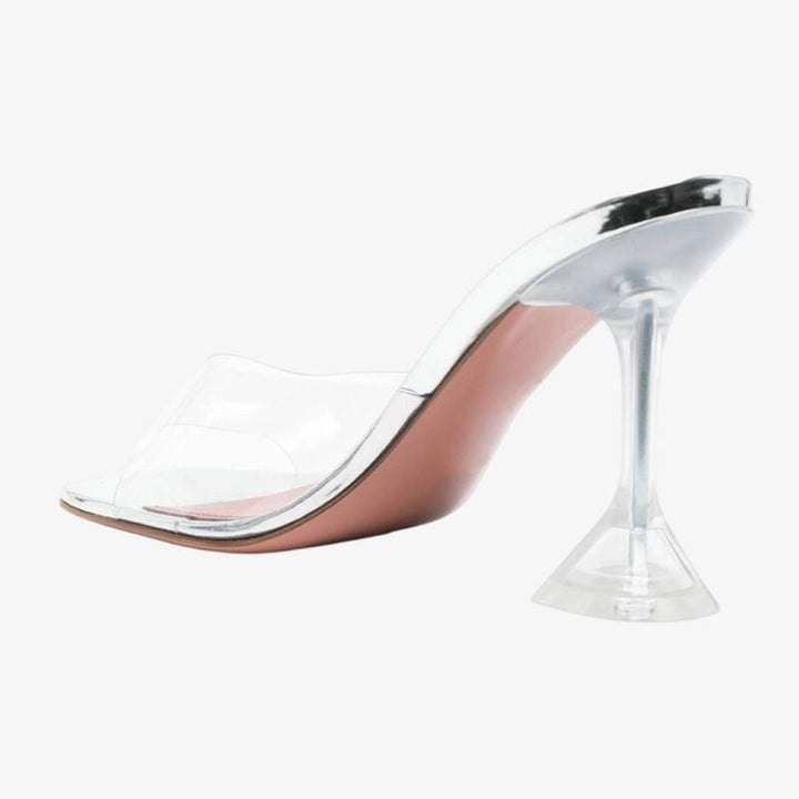 Make a modern statement in these transparent 95mm mules, featuring a distinctive square open toe and high sculpted heel. The calf leather insole adds a luxurious touch, while the sleek PVC construction creates a contemporary look.Color: transparent
