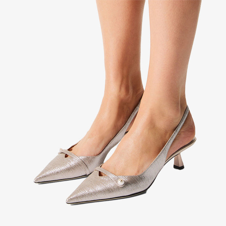 Glitter Slingback Pearl Strap Pumps