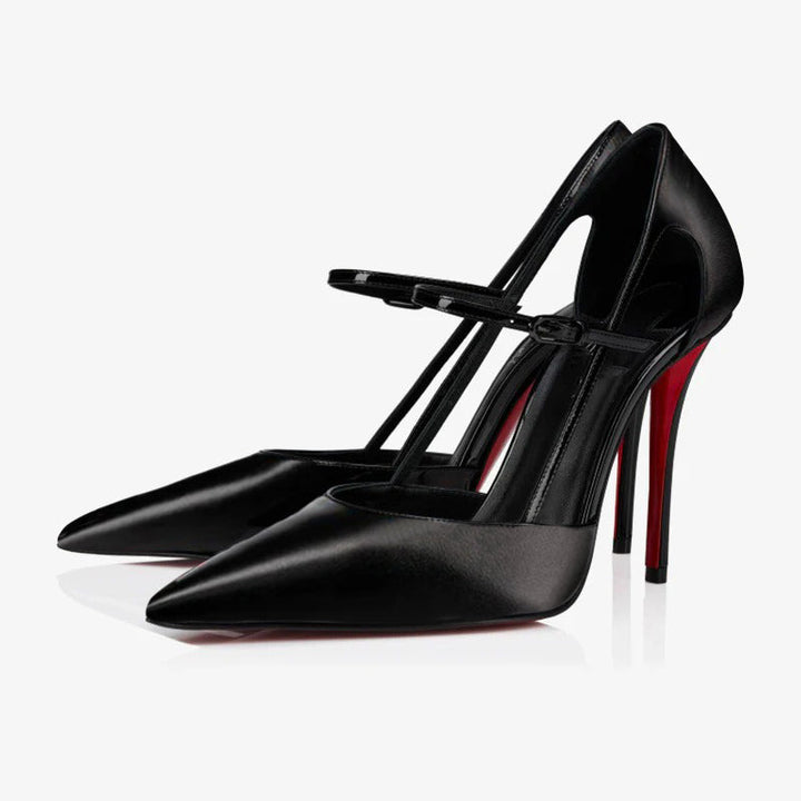 Leather Open-Toe Stilettos Black | Nude