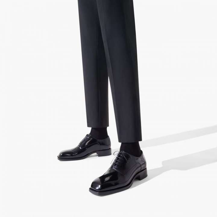The timeless Oxford shoe stands out with its sleek lines and urban elegance. Crafted from smooth black calf leather, this model features a square toe for a modern touch. Delicate topstitching and slim tone-on-tone laces enhance its sophisticated appeal.