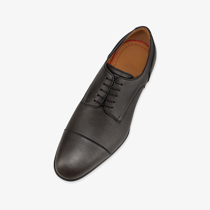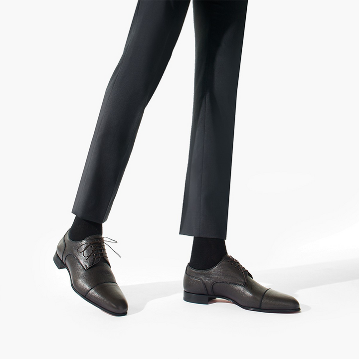 Perfect for rainy days, this city derby shoe features a wider fit and a flexible sole for maximum comfort and durability. Crafted from luxurious calfskin leather with a textured Ombre Minigraine Brush finish, it blends timeless style with a modern touch. The signature red sole adds a distinctive flair, ensuring both sophistication and practicality.