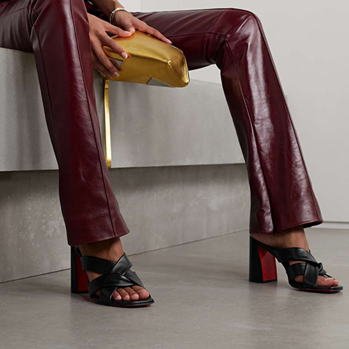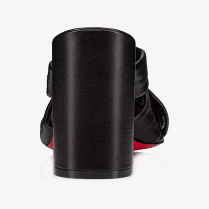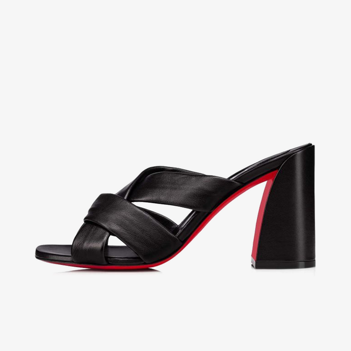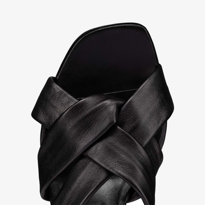 The savoir-faire of this design stands out with its asymmetric 100 mm heel. Made from black calf leather, its tone-on-tone straps delicately criss-cross the instep, beautifully showcasing the foot. With clean lines, this sophisticated model exudes an elegant and timeless charm.